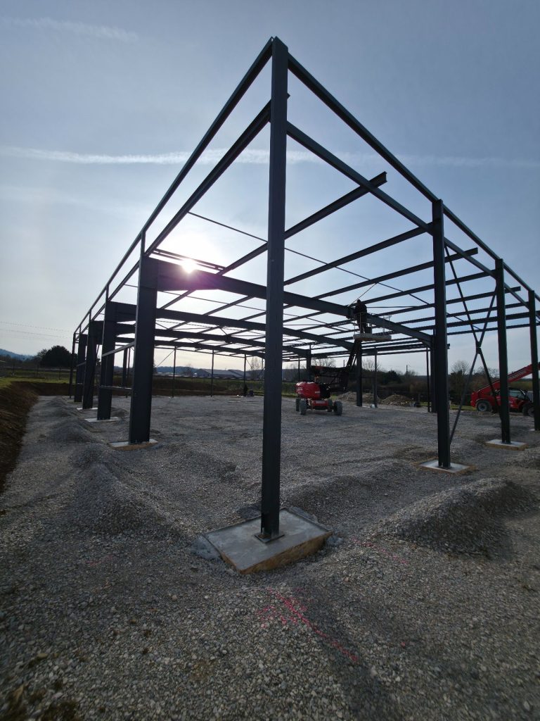 Levage de la charpente métallique à Poligny : l’ossature industrielle prend forme